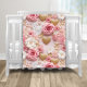 Bonito cobertor de bebês rosa e dourado com corações e flores em um fundo cor-de-rosa pincelado. Este lindo cobertor de bebês rosa e dourado funciona como excelente para trazer o bebê para casa ou como um presente chá de fraldas.