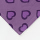 Este cobertor de velo apresenta um padrão repetitivo de corações roxos de dois tons em um fundo roxo.