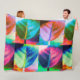 O trabalho de arte de abstrato desse Flórida Blanket começou como uma fotografia original de ZoeSPEAK de uma folha de uma uva-do-mar. O design explora a variedade de combinações de cores vindas da luz brilhante e áreas de sombra da folha lisa, quase oval, e do fundo. Há vermelhos brilhantes, pinks, lavandas, aqua e azuis escuros, laranja e verde escuro e claro. As veias e o caule da folha adicionam dimensão e cores.