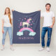 Uma garota bonita, rosa e roxa, um cobertor de unicórnio do arco-íris. Personalize-o por um presente para uma menina.