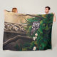 Homem Verde com uma coruja bonita amiga num galho de árvore. Nó celta trabalha parede em pedra atrás deles.