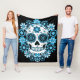 O crânio de açúcar Dia de los Muertos em tons coloridos de azul cercados por flores.