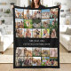 make your own custom photo blanket for any occasion. Features 25 of your favorite picture memories in a simple grid style design alongside personalized text in vintage retro typewriter typography.