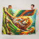 Este cobertor de velo tem uma criatura de leão nele.