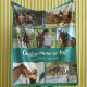 Este cobertor azul teal moderno do cavalo 7 foto colage fleece é o presente perfeito para um jovem equestre, servindo como um belo guardião que eles irão cultivar para sempre! Quer seja para um aniversário, Natal ou como um noivo memorial de estimação, este modelo de cobertor personalizado permite adicionar suas próprias fotos e texto. Tire proveito da ferramenta de edição para ajustar o tamanho da fonte, o posicionamento do texto ou até mesmo alterar a cor de fundo de acordo com as suas preferências.