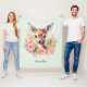 Um cobertor com uma bela ilustração com um veado fofo. Cercados por rosas e flores cor-de-rosa.