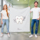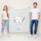 This light grey fleece blanket features a cute botanical tooth illustration and is personalized with a name in a script font.