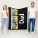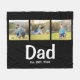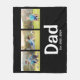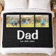 Celebrate fatherhood in style with this Dad Established photo fleece blanket featuring elegant white script and space for three personalized photos. A heartfelt and practical gift for dads, this custom fleece blanket is perfect for everyday use.
