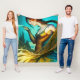 A woman in an intricate, flowing dress stands gracefully, surrounded by swirling patterns and vibrant colors. She appears to be in a dreamlike state, with a backdrop of city-like silhouettes and a mystical atmosphere.