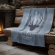Cobertor De Velo Deer Antlers Silhouette & Snowflakes Blue ID861