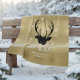 Este cobertor de velo apresenta os veados, a silhueta e os flocos de neve em preto e branco sobre um fundo de efeito texturizado em tons de ouro. O texto "Feriados Felizes" opcional foi fornecido com uma modelo para adicionar seu nome ou outro texto. Procure ID861 a ID864 para ver opções de cores adicionais e outros produtos neste conjunto de design de Natal moderno.