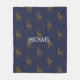 Caçando o cobertor de velo com lugar para seu nome no centro. Cor azul escura com imagens de cor castanha que fazem um padrão sobre cobertores que vêm em três tamanhos.