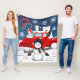 Esta design apresenta a nostalgia de um caminhão vermelho vintage com alguns animais árcticos e um boneco de neve em uma cena de vitória.