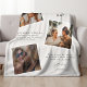 Descubra o dom perfeito do Dia de as mães que oferece um toque pessoal. Nosso cobertor projetado de forma exclusiva apresenta espaço para três fotos e uma seleção de mensagens modelo incríveis. O melhor de tudo, é versátil o suficiente para celebrar cada figura-mãe em sua vida - seja mãe, mãe, mãe, bônus, ou alguém "como uma mãe". Mostre a ela seu amor este Dia de as mães com um cobertor que conta sua história compartilhada em fotos.