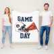 Este cobertor aconchegante mostra orgulhosamente o apoio à Universidade de Auburn no dia do jogo! Apresenta um capacete de futebol clássico com o logótipo azul icônico "AU", centrado entre as palavras "GAME" e "DAY" em letras azuis a negrito. Um vibrante pênis laranja estende-se por trás do capacete, mostrando orgulhosamente uma face estilizada de mascote de tigre e a palavra "TIGERS". Esse design impactante e reconhecível é ideal para permanecer aquecido enquanto aplausos nos Auburn Tigers, seja em casa ou no estádio.
