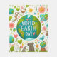 Mensagem moderna do dia da Terra com desenho animado, corações e ícone do globo.
