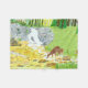 Um cobertor de velo com uma bela cena florestal, incluindo bebendo de pata e fada de um riacho perto de uma cascata. Arte original por W.B.
