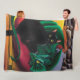 Gato negro se abraçando em um travesseiro burgando entre outros travesseiros com um amigo dragão verde.