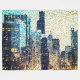 Edifícios da cidade azul em estilo mosaico com algumas pinceladas que podem causar alguma percepção de sombra e, consequentemente, alivio.
