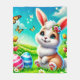 Ostern im Frühlingsgarten sitzt ein Hase und freut über seine Ostereier, die er verschenken möchte!