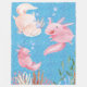 Este cobertor charmoso e caprichoso apresenta um axolotl de desenho animado sob o tema do mar. A imagem colorida apresenta uma família se três axolólitos bonitos nadam alegremente no mar. O fundo apresenta um design de água com aparência realista. Vários corais e folhagem marinha são fotografados ao longo do fundo. Um pequeno axolotl de bebê rosa está nadando abaixo dos pais.