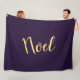 Este design de Natal mostra o texto "Noel" centralizado escrito em um roteiro festivo amarelo ao longo do comprimento do design contra um fundo roxo profundo.