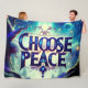 Este cobertor de velo diz "Escolha a Paz" nele.