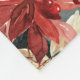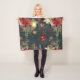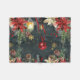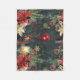 Um design de Natal luxuoso e festivo que apresenta um fundo noturno verde-escuro de floresta com flocos de neve de ouro a brilhar, poinsetos pintados a aquarelas, uma lanterna brilhante, cones de pínus e morangos vermelhos com um ornamento brilhante de bola vermelha em queda de fita vermelha e o Feliz Natal escrito em guiamento de pincelada de ouro.