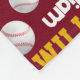 Basebol desportivo num cobertor de nome personalizado com fundo vermelho escuro. Este cobertor típico com formato desportivo tem bolas de base, e texto vermelho escuro, vermelho claro, ouro colorido e branco que pode ser personalizado com seu próprio nome, lê-se atualmente William. Outras bolas de esporte neste design estão disponíveis. Projetado por www.mylittleeden.com