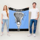 Cobertura exclusiva de lacrosse com design de pente e bola de lax sobre fundo azul-claro. Edite texto para adicionar o nome do jogador de lacrosse e o número do grupo.