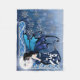 Raven cabelou fada toda em azul. A lua brilha intensamente ao seu lado. Flocos de neve e nó celta funcionam ao redor deles em pano de fundo de ombre azul.