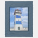 Design com tema náutico com decoração de farol com cor d'água em quadro azul escuro. É possível mudar a cor de fundo e adicionar uma diferente à design com sua escolha.