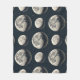 Elegante cobertor de fase lunar e padrão celestial apresentando luas crescentes, estrelas e detalhes lunares radiantes em um fundo escuro. Ideal para amantes de astrologia, entusiastas da lua, buscadores espirituais, observadores de estrelas e fãs de estilo celestial místico.