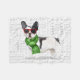 Jogue diversão para aquecer a estação perto da lareira ou jogada sobre o sofá. Um Boston Terrier em óculos de sol vermelhos e um cachecol verde em um fundo de arte mundial para a decoração caseira do amante do cachorro.