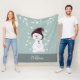 Este cobertor azul de velo apresenta um doce boneco de neve curtindo a neve. personalize este cobertor de velo com um nome.