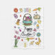 Uma Páscoa e uma design colorida com coelhinhos fofos, pintinhos de bebês, flores, ovos e doces!