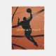 O Design de basquete Fleece Blanket com a silhueta de um jogador saltando em direção ao aro contra um fundo de basquete, com personalização personalizável.