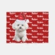 Um adorável Coton de Tulear, pronto para o feriado, tem seu nome modelado em um fundo vermelho sazonal. Altere a cor de fundo simplesmente escolhendo personalizar.