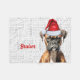 Jogue diversão para aquecer a estação perto da lareira ou jogada sobre o sofá. Um Boxer bem vestido está pronto para o feriado e se senta contra um fundo de arte midiática com o nome do cão ou nome da família - perfeito para a decoração de casa de férias do amante do cachorro. Um presente perfeito para o seu cão também.