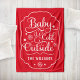 Um cobertor na moda e aconchegante sazonal apresenta o design de tipografia "Baby it's Cold Outside" em roteiros brancos modernos com floco de neve e sotaques estelares em um quadro decorativo. Inclui o texto do nome do monograma da família personalizada que pode ser personalizado. O fundo vermelho festivo pode ser personalizado para coordenar com a sua decoração.