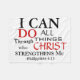 Encontre inspiração e empoderamento em nosso design com o universo otimista Philippians 4:13. O verso é apresentado em várias fontes cativantes, com as palavras impactantes 'Do' e 'Cristo' brilhando brilhantemente em vermelho vibrante. Esta design lindamente encapsula a essência da força e da fé, lembrando que você pode fazer todas as coisas através do Cristo que o fortalece. Use-o orgulhosamente como uma fonte de motivação e um testamento para sua fé inabalável.