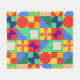 Esse cobertor de velo médio tem um design de quadrados Bauhaus com formas ímpares de dentro, repetido na design.