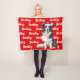 Seu cachorro merece um cobertor próprio, especialmente com seu nome e raça nele. Jogue diversão para aquecer a estação perto da lareira ou jogada sobre o sofá. Um collie da fronteira em um chapéu de Papai Noel, com o nome do cachorro modelado no fundo