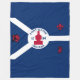 Folece Blanket com bandeira da cidade de Fort Wayne, Indiana; bandeira azul e branca e com um bloco vermelho no centro e três ilustrações no campo azul - ilustração da cabeça do Nativo Americano, da fleur-de-lys Francesa e do leão Britânico