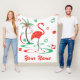 Um design extravagante, festivo, com um toque retrô em vermelho e verde. Um flamingo vermelho percorre a água ao lado de uma palmeira decorada com bolas e fita de Natal. Um design personalizável para você personalizar com seu próprio texto, imagens e ideias. Uma imagem de arte digital original criada por Jess Perry.