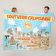 O cobertor brilhante e encantador de desenhos oferece uma visão caprichosa dos parques do sul da Califórnia - personagens bonitinhos apreciam o sol quente da Califórnia mostrando Los Angeles, San Diego, Riverside, Palm Primaveras, Anaheim e Long Beach, Anza Borrego e Joshua Tree, bem como as cidades fronteiriças de Tijuana, Tecate e Mexicali.