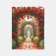 The image of red roses hanging over a garden path covers this elegant Fleece Blanket.