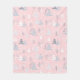 Faux bonito flocos de neve prateados e brancos e árvores de Natal em um cobertor de natal cor-de-fundo rosa. Moderno e chique para a mãe, Pai, vovó, vovô, qualquer um para aquele duro-a-comprar para a pessoa na sua lista. Feliz Natal e Felizes Férias!