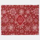 Design de cobertor de natal monograma com padrão branco de flocos de neve de abstrato com fundo vermelho burgundy.