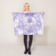 Design apresenta flocos de neve roxos e brancos sobre um fundo macio e branco.